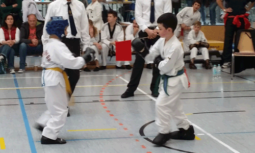 … an den großen Fan-Club, der eigens dafür die Fan-Schals des Taekwondo-Zentrum Remchingen getragen hat, um ihre Taekwondoka zu unterstützen Bilder zum Turnier: