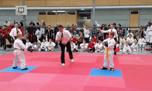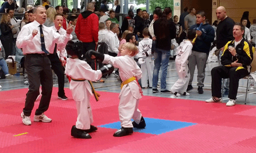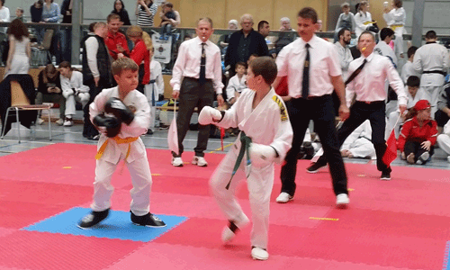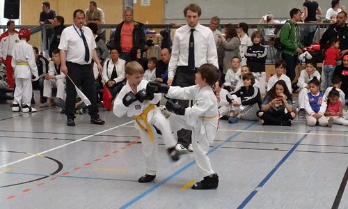 Spindler (5. Dan). Die Sportschule Fritsch war natürlich auch wieder mit einigen Taekwondoka dabei, die gut vorbereitet waren und sich ihrer Sache hervorragend gestellt haben. In den Zweikämpfen der insgesamt 220 Teilnehmern waren bei den noch wenig Erfahrenen bis hin zu den Routiniers bewundernswerte, spektakuläre Kämpfe zu sehen. In den einzelnen Klassen wurde nach Gürtelfarben, Alter und Gewicht unterteilt und dann im reinem K.O.-System gekämpft – wer verliert, scheidet aus.